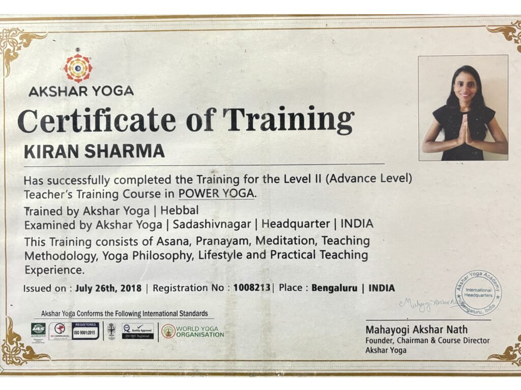 I’m Kiran Sharma, a certified yoga teacher specializing in medical yoga, prenatal yoga, and alignment-based practices. I support individuals in managing stress, anxiety, physical discomfort, and lifestyle-related health conditions through safe, mindful, and personalized yoga sessions.